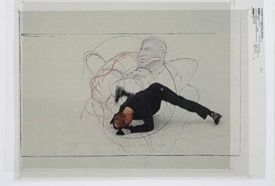 他的作品通常表现空间中一个简单的运动。他与著名的舞蹈指导William Forsythe(强烈推荐此人,youtube上可以搜到他的视频,堪称绝伦)合作的作品Airdrawing / whenever on on on nohow on是他的代表作。在这组作品中,他用三部摄影机从不同角度记录一组重复的动作,然后根据动作在平面上描绘出图像,于是将形体和时间的延续在一个平面上记录下来。还有两部微型摄影机固定在表演者的双手上来记录环境相对于人的运动,这两部摄影机拍摄到的影像是晃动和模糊不清的,与三部固定的摄影机形成对比。Peter 想通过把一个分解过的动作放在空间里,不断的重复重复再重复,来说明whenever on on on nohow on这句话——无处不在的循环轨道。他说这段文字表达了一个运动的顺序,总是以死亡结尾。在他的作品中也可以看到往复的运动停止的一刻。